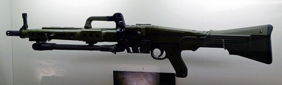 Ameli配備了模塑聚合物材料護手,兩腳架和鐵瞄準器,包括前部支柱和後部孔徑瞄準器,包含在300,600,800和1,000米範圍設置的手柄組件中。 武器的設計大量使用鈑金衝壓件; 接收器,槍管護罩和觸發器殼體均由鋼壓製成,然後焊接。 快速拆卸雙腳架具有高度調節功能,安裝在槍口末端的多孔槍管熱罩上。 輕型機槍可以與雙腳架配合使用,安裝在車載支架上或靜態三腳架上。