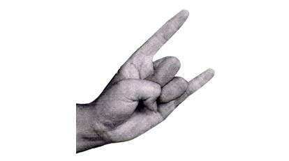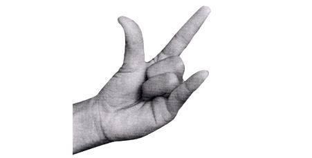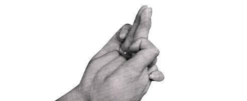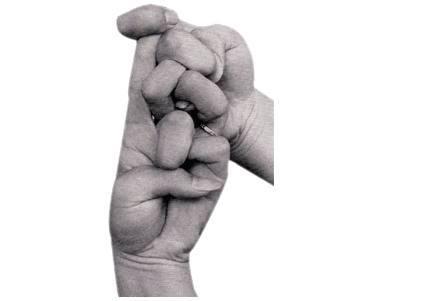 3. 大姆指、食指、小指,各朝上伸,即成此指訣。