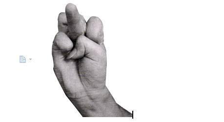 3. 大姆指、小指指尖皆收入掌心,中指朝上。