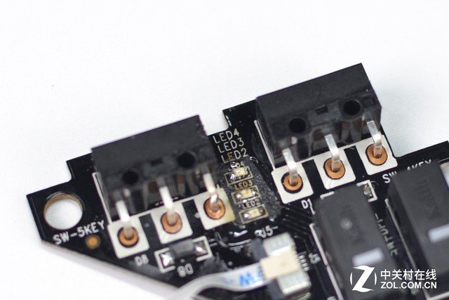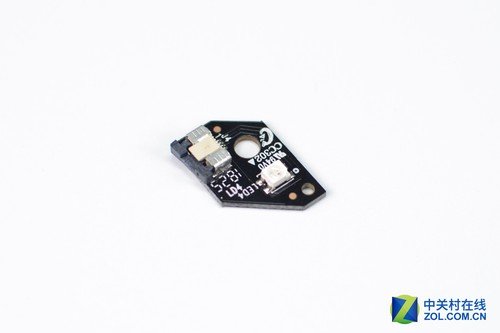 在最小一塊PCB板上有一顆個頭較大的LED燈,其對應滑鼠背拱位置的燈光。雷柏VT350支持約1680萬色RGB背光系統,離不開這顆LDE燈,實際燈光效果非常不錯。