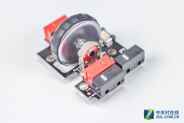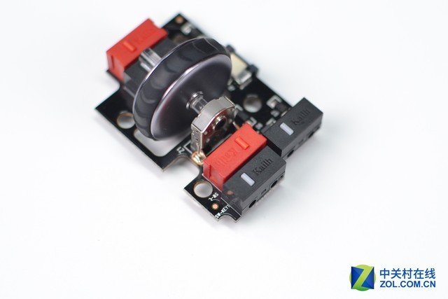 滾輪微動和側鍵(靠近左側主按鍵)微動均來自凱華,為凱華白點。上面沒有標註型號,不過手感還是不錯的;滾輪編碼器同樣來自凱華,由於間隙較小,無法看清型號。