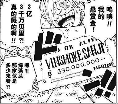 但是在蛋糕島篇結束後,山治的賞金暴漲,直接漲到了三億三千萬,比索隆的懸賞金要高上一千萬。而山治對此事卻沾沾自喜。儘管這是草帽海賊團的特色,但是細思極恐,山治的真實定位卻被無意間的展現出來。
