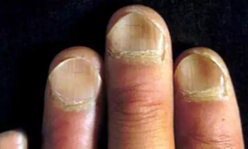 正常人的指甲都是:中部隆起,邊緣彎曲向下。如果你發現你的指甲正好相反,中央凹陷,四周隆起,這就是匙狀指,又稱勺狀甲和反甲。見於貧血、濕疹、凍瘡、扁平苔癬、斑禿、梅毒、風濕病和甲狀腺病。