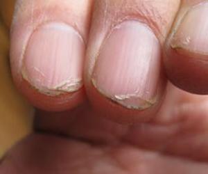 據估計,20%的女性都有指甲脆性增加的症狀,即脆甲症。脆甲是指甲脆、容易斷裂,多發生在薄甲病例中。可能與貧血、維生素A或B的缺乏,洗滌液長期泡手有關。查明病因對症治療即可。