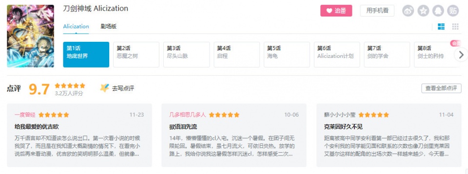 真正的轉機,則要等到2012年。這一年的夏天,輕改動畫《刀劍神域》火遍了全世界,其人氣之高,6年內不曾衰減,看看現在《刀劍神域 Alicization》在B站的評分你就知道了。