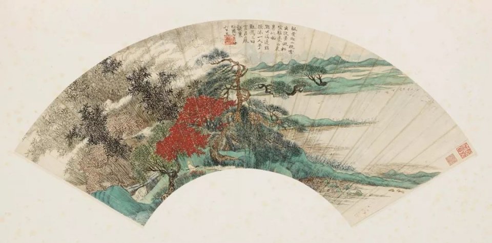 圖7吳歷,《楓葉晚雲圖》扇,清,紙本設色,17.4×52.7厘米,上海博物館藏