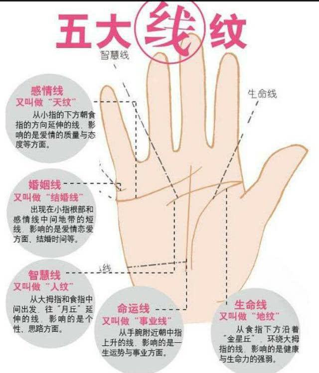 子女線,又稱「荷爾蒙線」,在婚姻線上面、垂直於婚姻線,其數量的多少代表一個人的精力:有很多條女子線的人,精力一定相當旺盛;有許多扭曲、細小子女線的人,體力與精神方面都有退化的跡象,生出來的小孩體質虛弱。