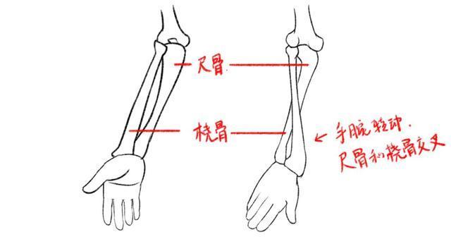 人骨不是機械,關節之間的扭動很靈活。手腕翻轉的時候,橈骨和尺骨相互交叉,中間部分就顯得變窄了。