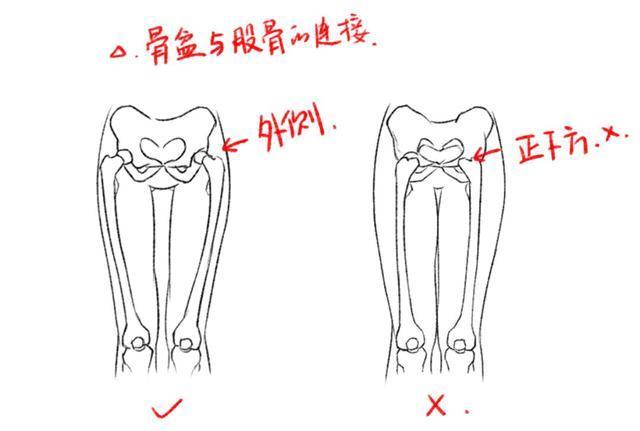 腿並不是從盆骨下面長出來的啊喂!初學者畫腿的時候,大都會犯這樣的錯誤,其實腿的位置是在盆骨的兩側。