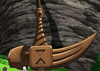 非常巨大而且沉重的單手斧,夜晚的艾斯卡諾無法舉起,梅利奧達斯只能拖著走。