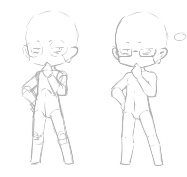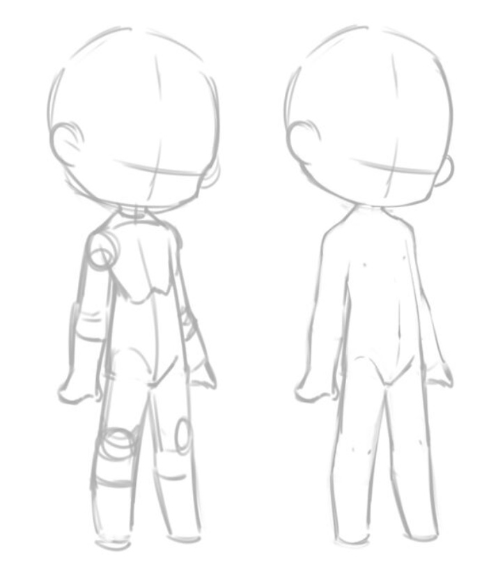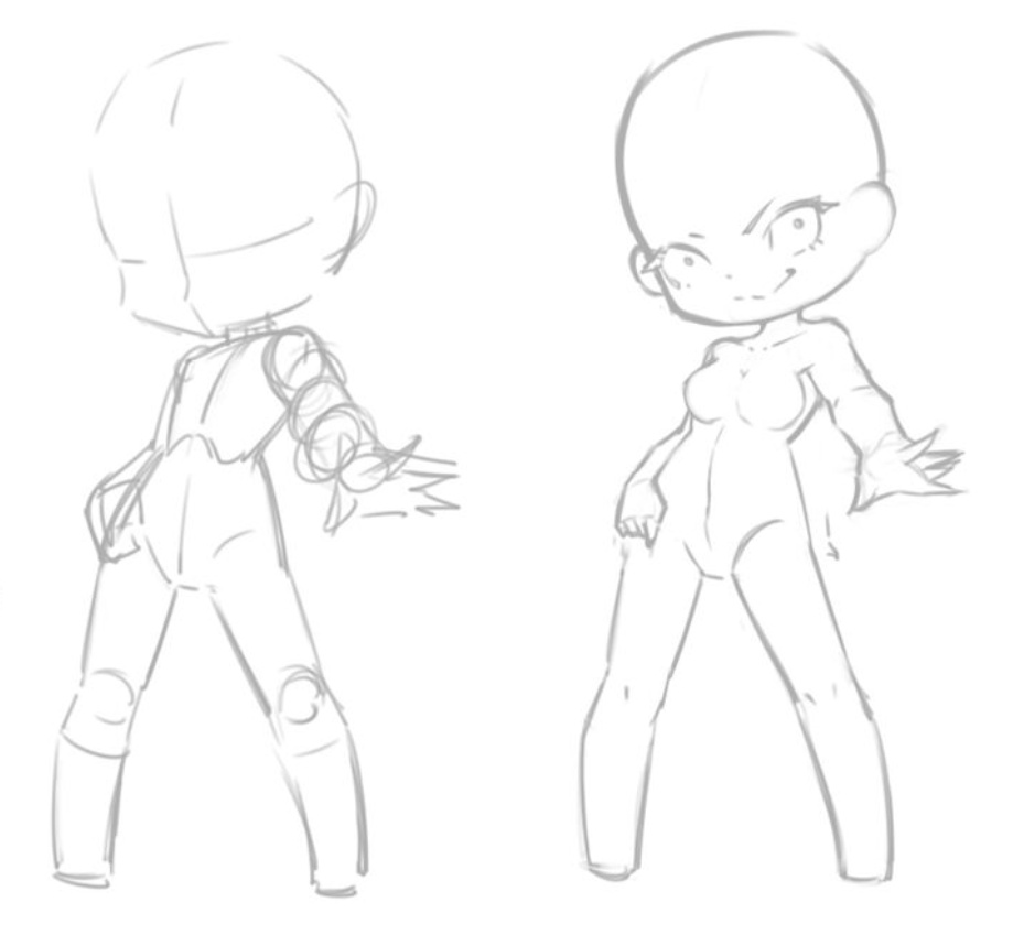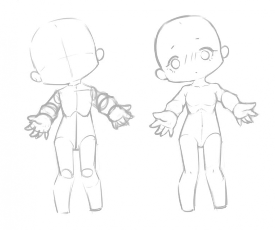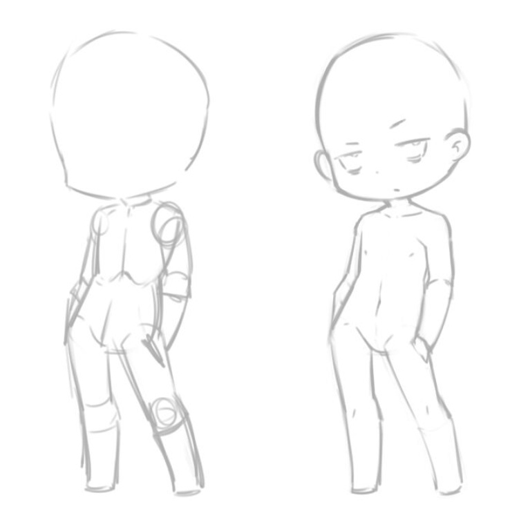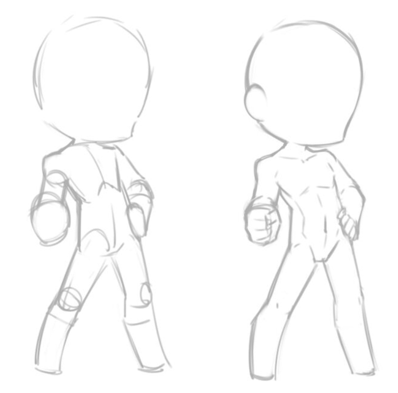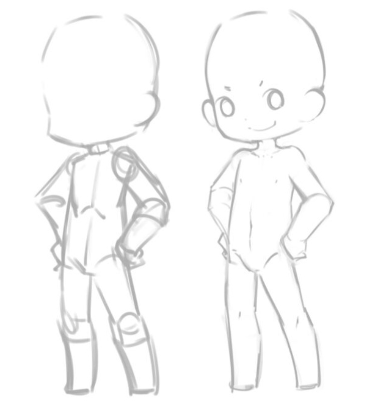 日韓系的q版人物,會比較注重肢體間的結構,q版人物的肌肉線條也和正常人物相對應,肩部,胸部,腰臀。