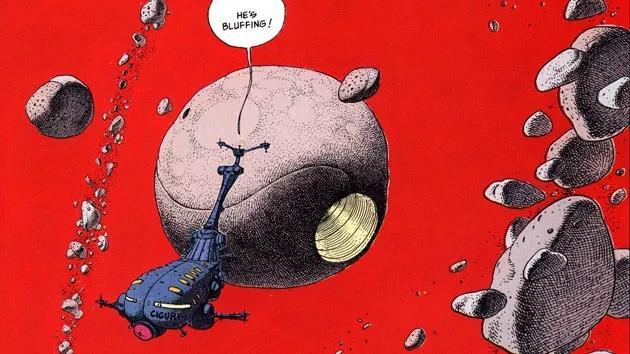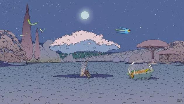 在我們小心翼翼地描繪現實世界的時候,墨比斯卻創造了一個屬於他自己的世界。他用非常纖細的筆觸和高超的技術,將一個被我們遺忘的世界觀展現在我們眼前。他的作品讓我們,意識到必須嘗試創作更富想像力的作品。
