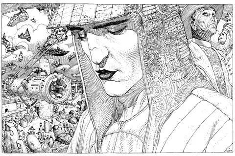 讓·吉羅(Jean Giraud,1938—2012)筆名墨比斯(Moebius),是法國國家級藝術家,創作了《阿扎克》 《封閉式車庫》 《伊甸園世界》等一系列經典科幻和幻想漫畫,與別人合作過《藍莓上尉》《印卡石》等長盛不衰的系列漫畫,還是科幻電影《異性》 、《第五元素》 、動畫《小尼莫》 (Little Nemo)的參與者。