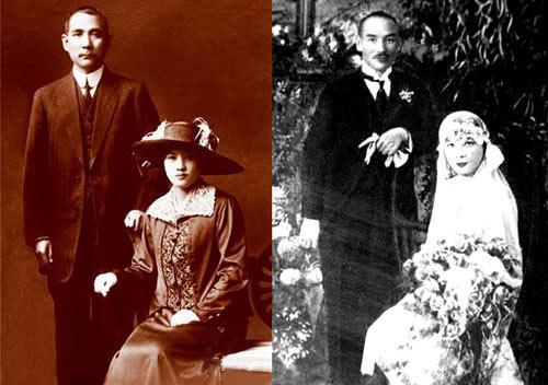 宋氏三姐妹嫁的都是非常的不錯;不過都是政治婚姻,這算不算當時那個家族女人們的悲哀!下面是孫中山和宋慶齡結婚照,以及蔣介石和宋美齡的結婚照。同樣的姿勢,不過一眼就能看出宋慶齡的氣質還是在宋美齡之上!