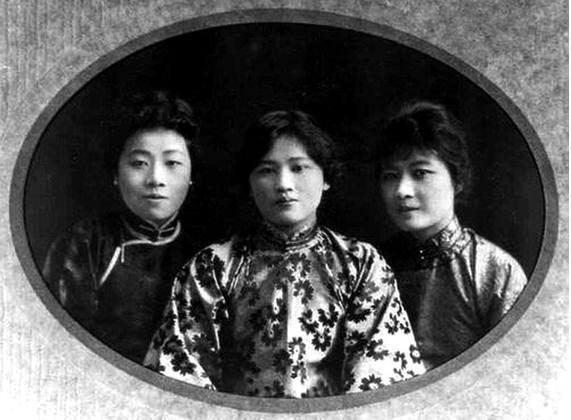 下圖是宋氏三姐妹的照片,左一為宋靄齡!中間為宋慶齡;可見,宋靄齡在年輕時容貌算是三姐妹中較差的!