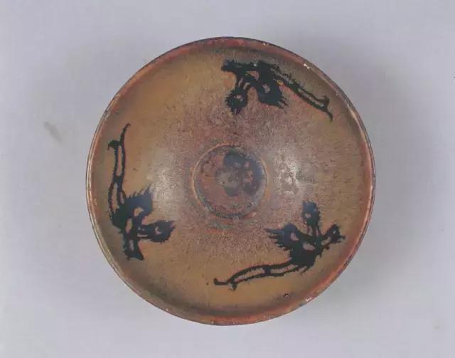 宋 吉州窯黑釉剪紙貼花三鳳紋碗