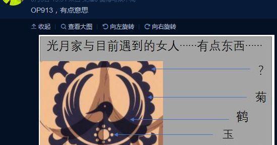 而且有大神在微博貼出了一張有意思的照片,其實這是和之國的標誌,但這個標誌卻隱藏了非常多的信息量,仔細看看,外面一圈是菊花、然後到鶴,最後是玉的標籤,還有一個最重要的信息點就是,最外面的圖是啥,很多人猜測說是佐烏島鯨之樹的尾巴,如果真是這樣就厲害了,這有可能意味著,在和之國會出現史上第一顆水系惡魔果實能力者,虎鯨!可以在水陸生活,不受半點的影響。