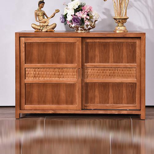 新中式餐邊櫃實木雙門置物櫃藤編家具東南亞風格推拉門儲物櫃