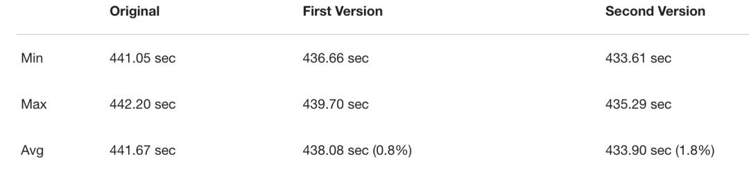 這樣一來,這個操作就變得快多了。它現在只佔用了執行時間的 9%。