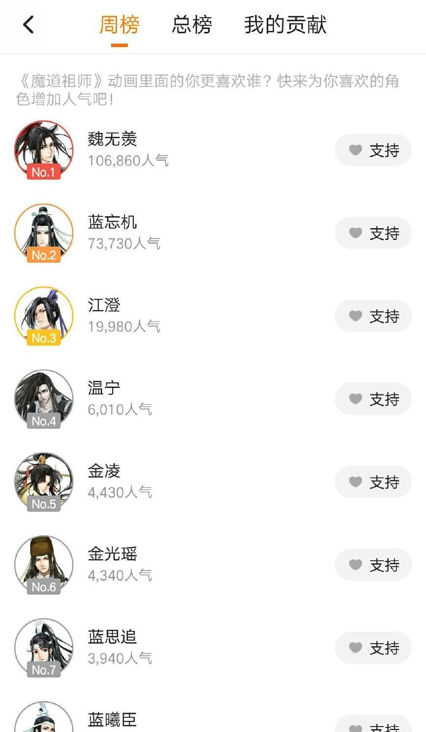 若是《義城篇》薛洋和曉星塵出來,人氣即便是進不來前三,前五也是沒問題的。畢竟薛洋的爭議太大了。