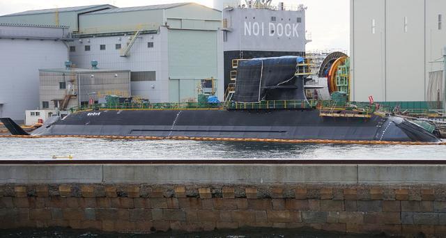 圖為神戶造船廠內正在建造的海上自衛隊SS-509"清龍"號常規潛艇。