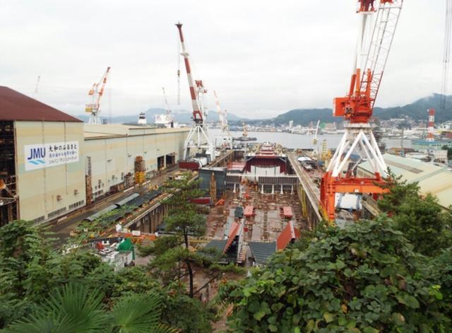 圖為曾建造"大和"號戰列艦的JMU吳港造船廠(原吳海軍工廠),如今其業務亦接近停滯。
