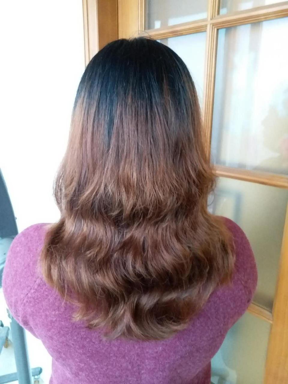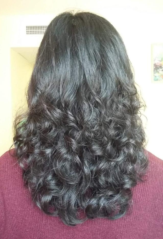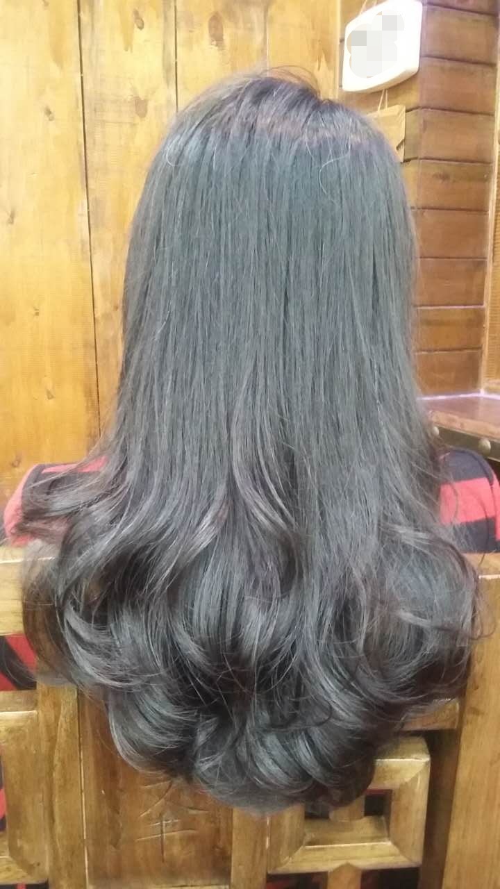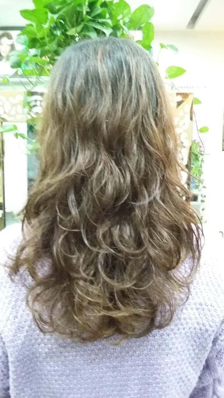 上圖是一款中高層次的發尾柔卷燙髮,也就是大彎的效果只在發尾呈現,可以通過層次的高度來控制波紋的位置。熱燙方法燙出來的大彎效果。