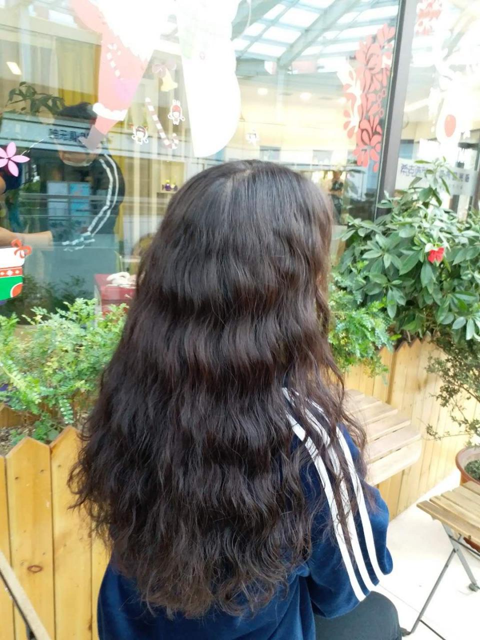 上圖就是螺旋燙的效果,現在流行的叫法是「泡麵頭」,不需要可以修剪層次,從上到下燙出自然的波浪紋理。這個是典型的冷燙效果。