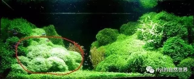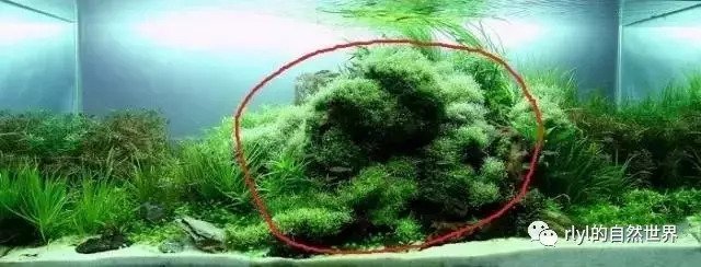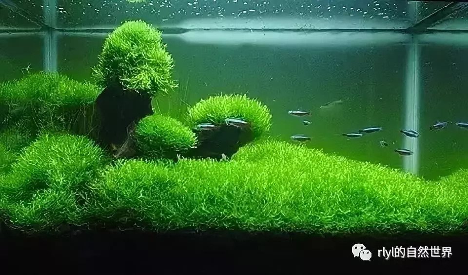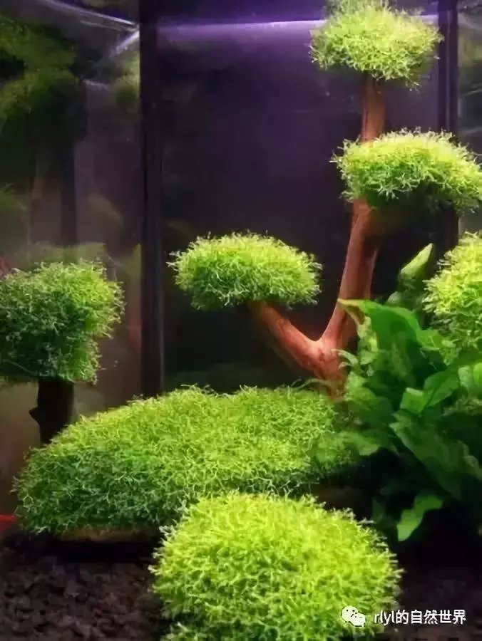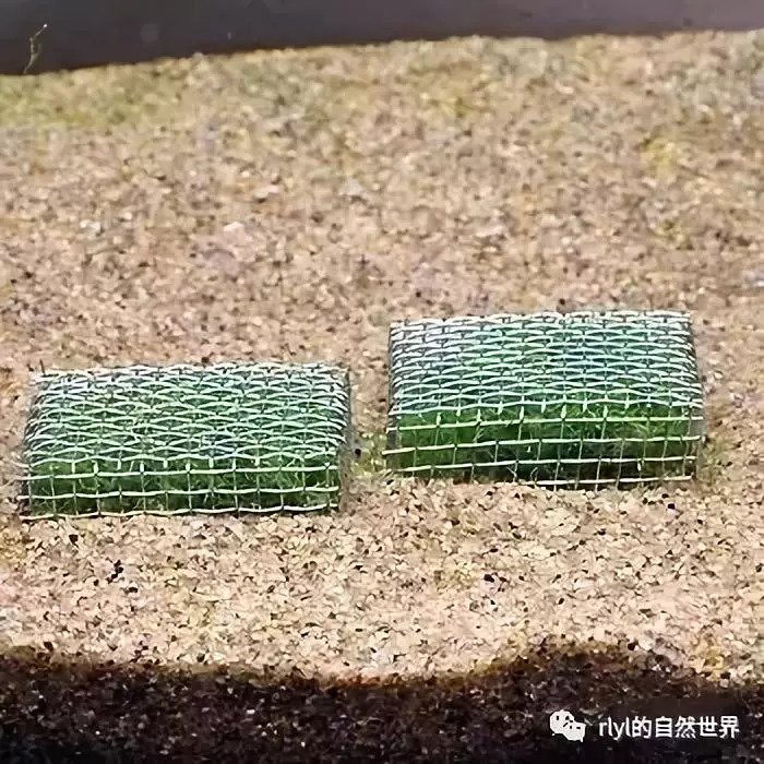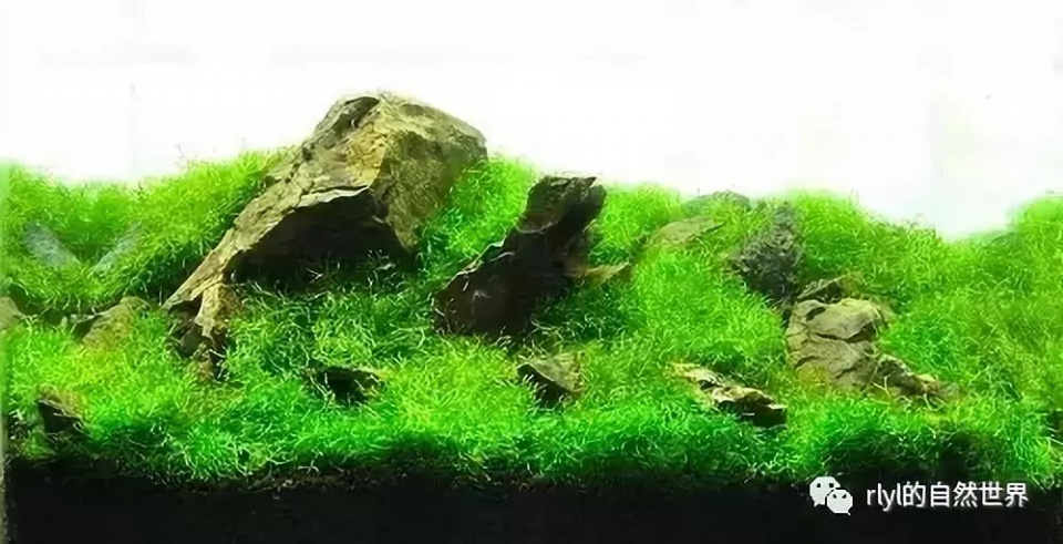 用鐵絲網固定後,反轉扣在底沙上,作為前景,宛若一大片碧綠的草地,往往出現在荷蘭式造景缸中。