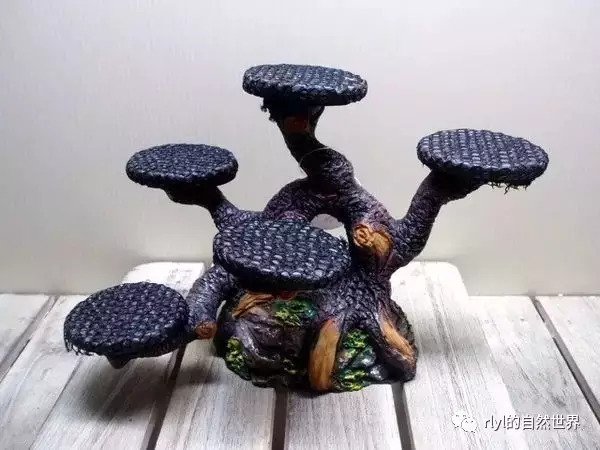 鹿角苔的顏色淺綠,形態飽滿,比其他摩絲做出的樹冠顯得更有春的氣息,一般用鐵絲網固定在沉木上。