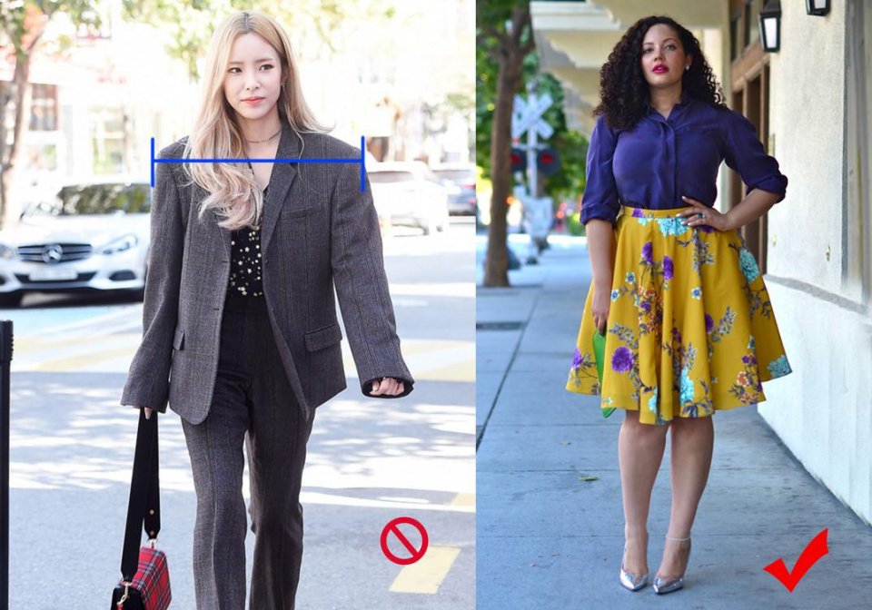 O型人容易犯的一個誤區是,害怕展示自己的身材,喜歡用寬大的衣服來遮肉,有時候是欲蓋彌彰,會顯得整個人體量更大。所以說過於寬鬆的版型只會讓你顯得更臃腫,而利落的版型,像有點高腰線的連衣裙、線條感明顯的西裝等都是不錯的選擇。