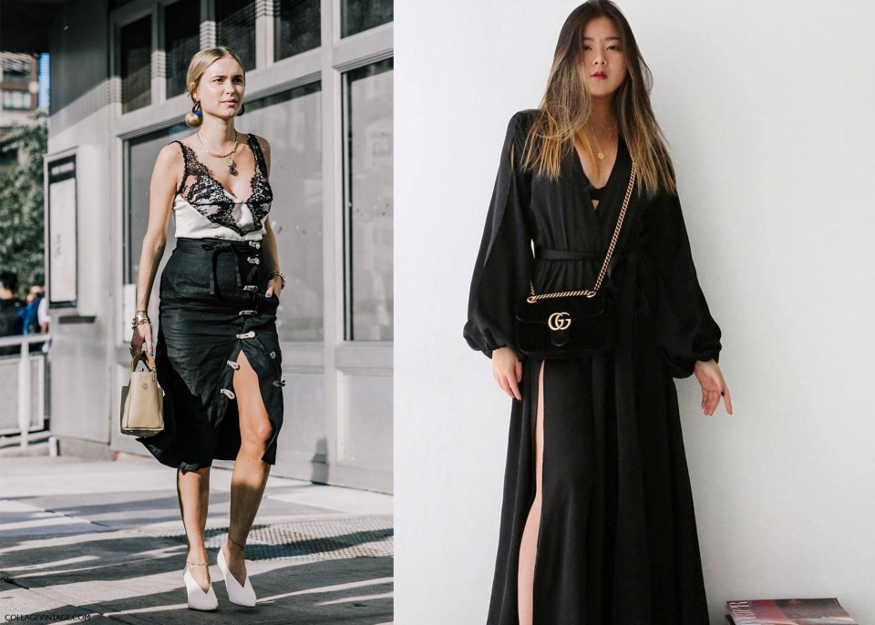 簡約風裡面加入開衩的設計,平添了不少風情美,日常常穿的款式有開衩連衣裙、半身裙以及開衩褲等,讓你的纖細美腿半露微露,下半身只要稍微有一點廓形感就能夠對蘋果身材起到揚長避短的作用了。