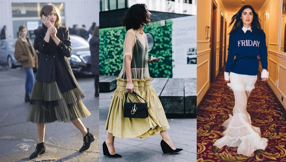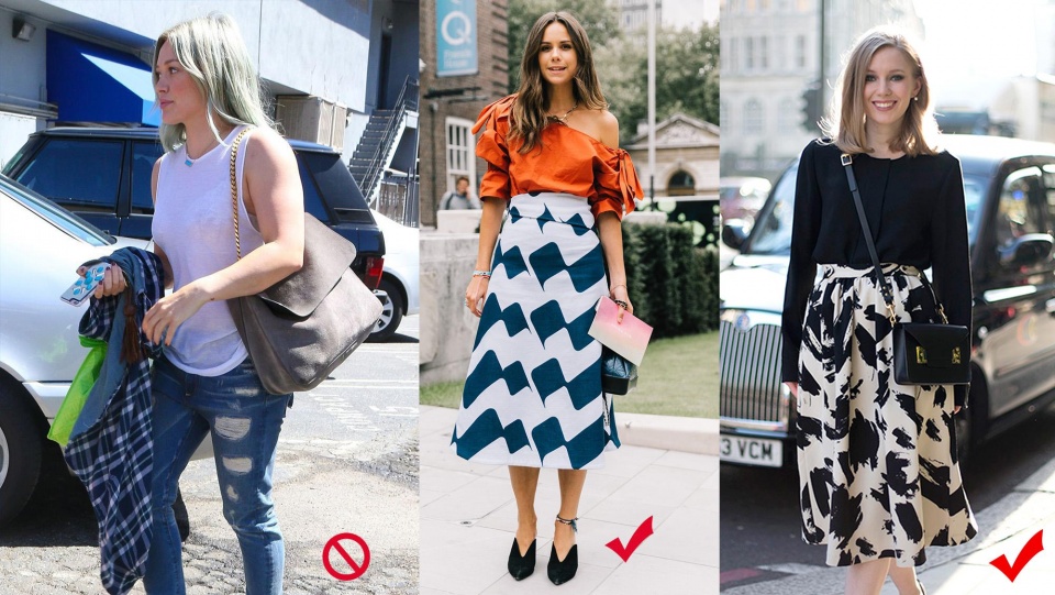 下半身採用大面積的圖案也是增加量感的一種方法,例如紋理圖案或者各種印花圖案的半身裙都是不錯的轉移注意力的方式,通過聚焦下半身看點,從而弱化了身體中部過於圓潤的事實。