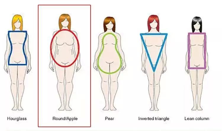在進入主題前,我們先來了解一下什麼是蘋果身材。蘋果型身材也叫O型身材,它給人感覺體量比較大,整體脂肪含量比較高,且重心集中在身體中部,加之臀部扁平,肩膀比較寬,因此看上去有點「頭重腳輕」的感覺 。但O型身材也是有優點的,通常她們的腿是比較漂亮的,外形上纖細又均勻。