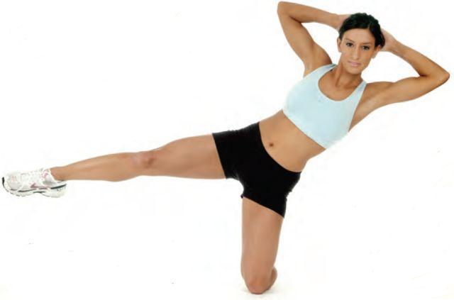 E.回到起始姿勢,也即左腿和兩手著地的姿勢,以上動作重複6次後換另一側。