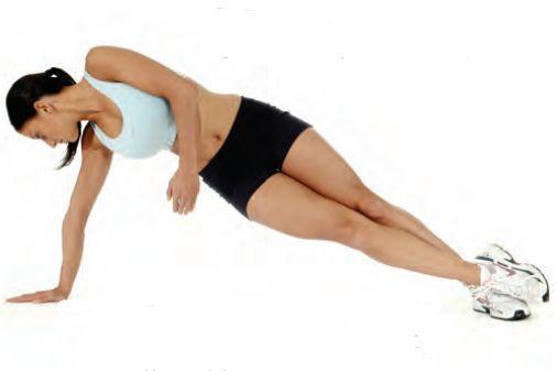 ● 髖關節應儘可能抬高使身體成為一個平板,這樣可以減少分散在肩關節和腕關節上的力。