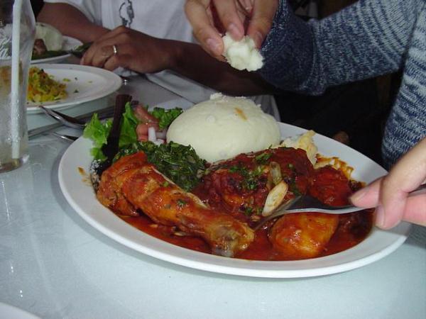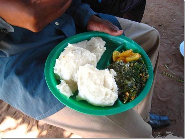 西瑪是尚比亞的「國菜」的名字,別小瞧這類似中國蓋澆飯或食堂自助餐的東西,它可是尚比亞國家級的代表,人人都吃它的。