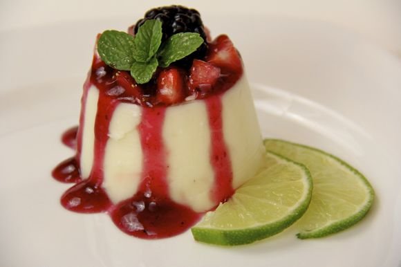 ...有譯作意式布丁的,有譯作意式奶凍的,維基上說「。。是一種義大利甜品,用鮮奶油、奶、糖、和魚膠混合在一起後,冷凍後就完成。通常會跟漿果、焦糖或巧克力醬一起食用」