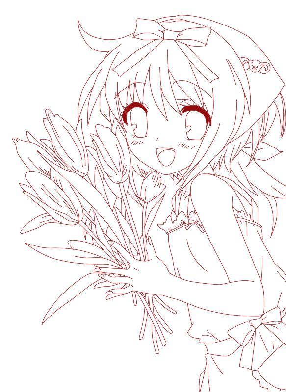 動漫長發美少女線稿2
