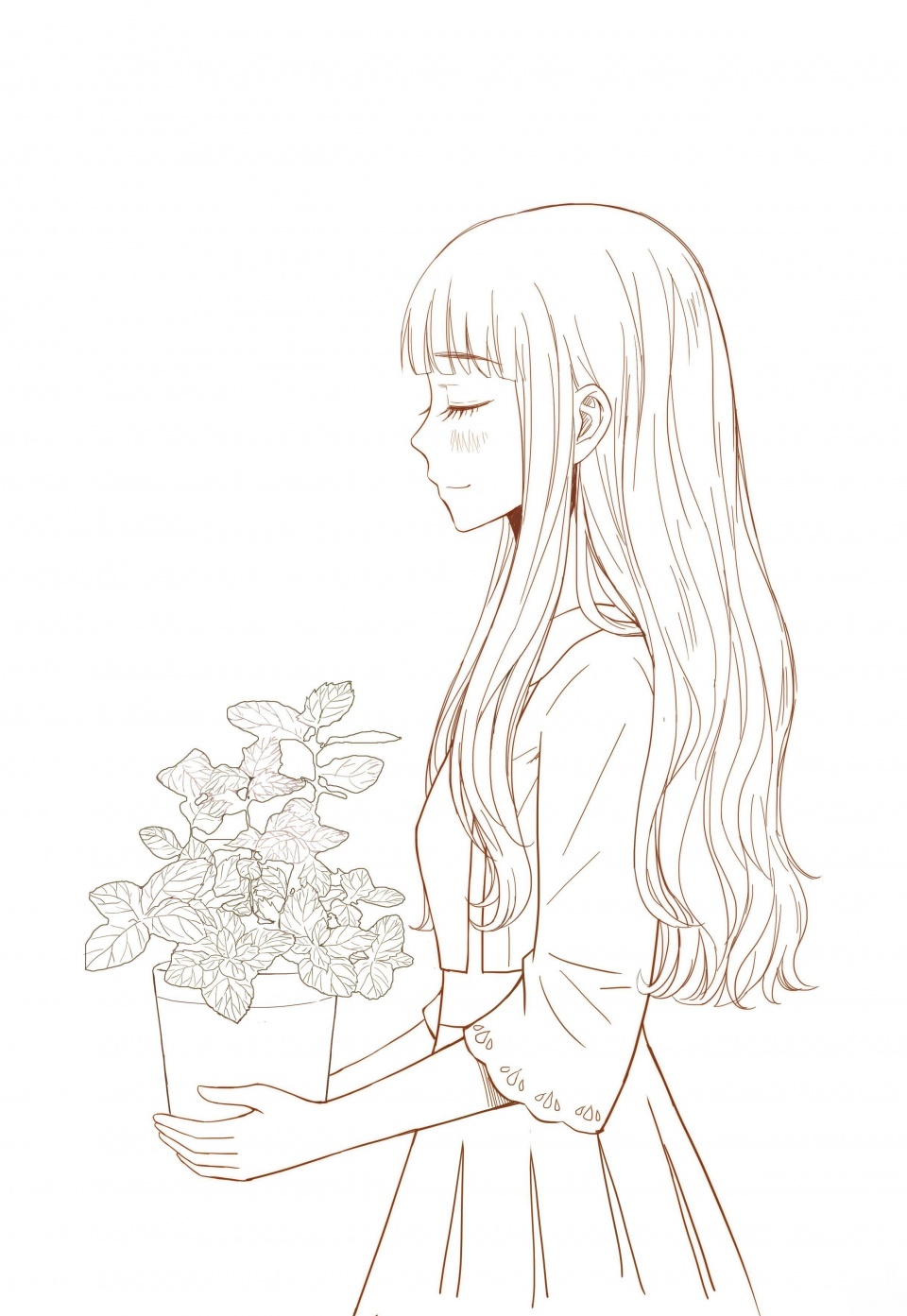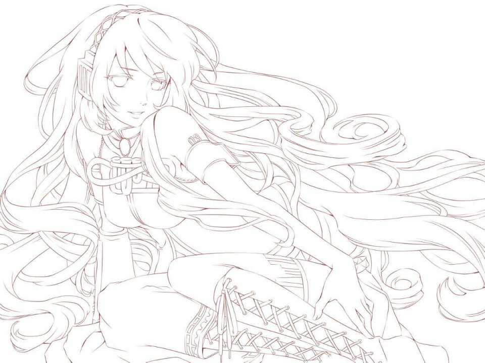 動漫長發美少女線稿7