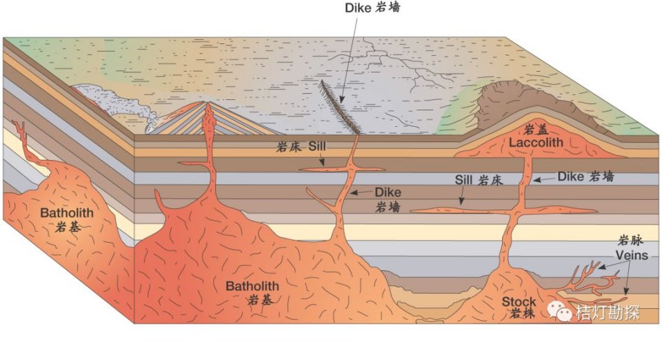 火成岩體的大小、形狀、與圍岩的接觸關係等。