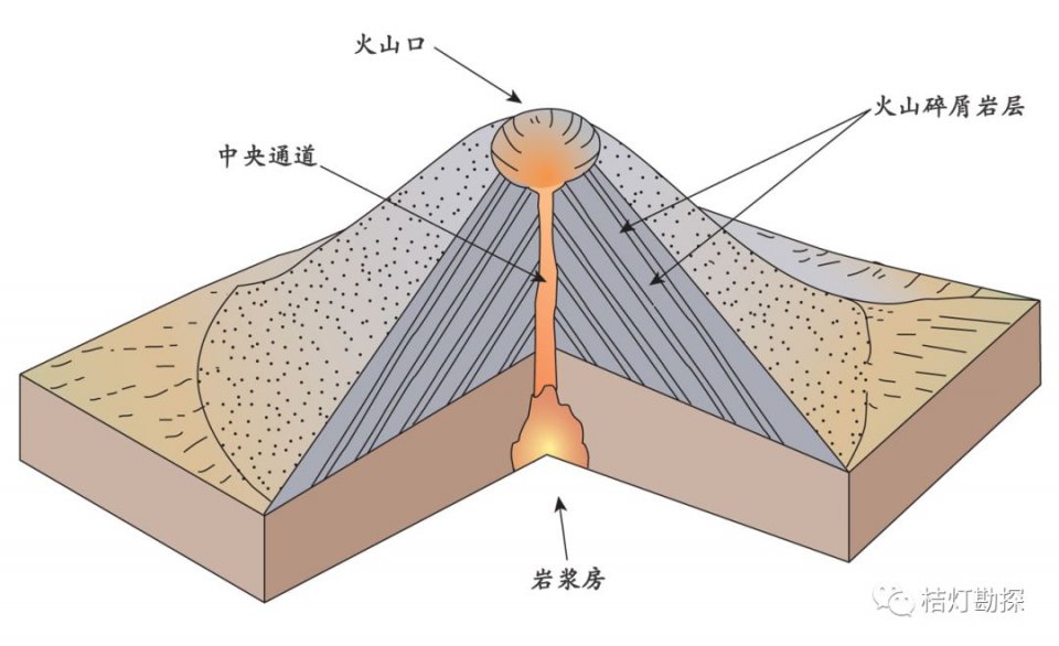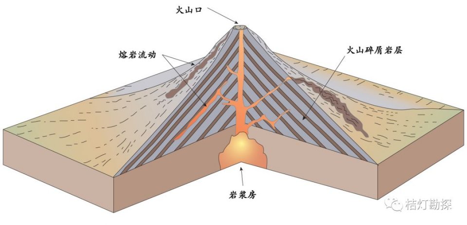 由許多熔岩流和火山碎屑的交替噴發形成。