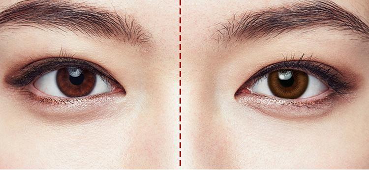 棕色的美瞳和瞳孔顏色接近,也適合各種膚色,而且更適合素顏佩戴,會給人浪漫溫柔的感覺。單色就自然人畜無害,雙色搭配的話又有深邃混血感,搭配妝容顯得更加有魅力。