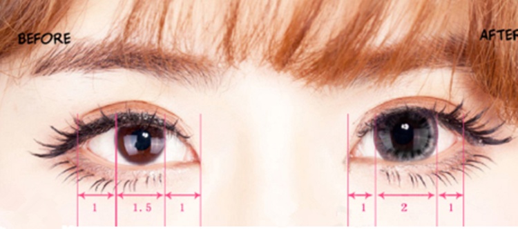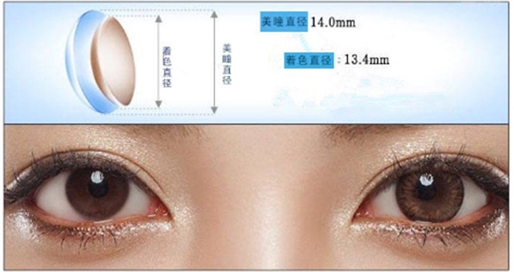 美瞳的直徑是選購美瞳時必須要考慮的因素之一,它影響到美瞳的佩戴效果。直徑就是指「鏡片邊緣對應兩點之間的最大直線距離」。直徑越大就對瞳孔的放大效果就越好,同時也會讓眼白縮小。
