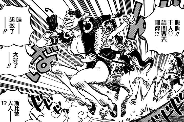 還是先來說一說這一期的內容吧!路飛打倒了霍爾德姆,抓著小玉準備跑路了。慌亂之中,路飛看到了一隻馬屁股,當場就坐了上去,想騎著馬逃走。想不到這隻馬居然是台柱斯皮德,斯皮德當然不想載著他們跑啊!