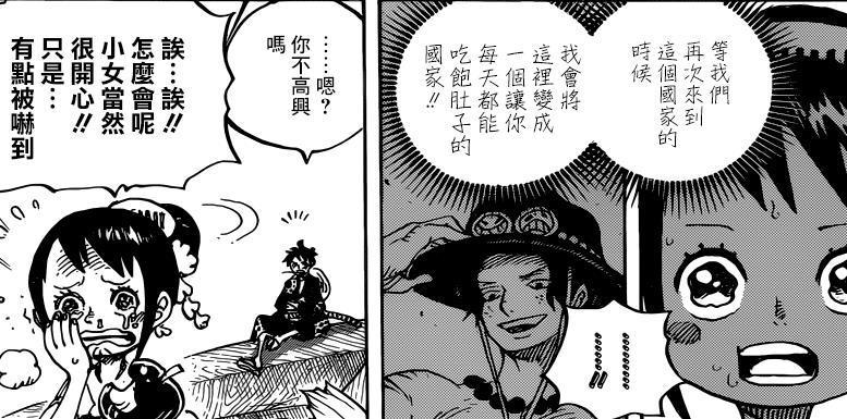 路飛說,在他們離開和之國之前,一定要讓他們吃飽飯。小玉此時又想起了艾斯的話,有點驚訝,因為路飛和艾斯說的話大同小異。