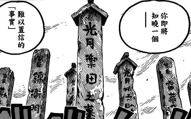高能劇情來了,羅說光月御田的城堡遺址里有一排墓碑,上面刻著桃之助,光月御田,雷藏,堪十郎和錦衛門等人的墓碑。意思是說,桃之助等人,早就死了,死在了黑炭大蛇和凱多的滅族之戰中。這也就揭開了桃之助20年前見過羅傑的謎底。畢竟光月御田20年前就被殺了,不可能有桃之助這麼一個8歲小孩。說不定,桃之助一夥就是霍爾德姆所說的光月一族的惡靈一族。他們全部有可能是亡靈吧!或者說是誰的惡魔果實能力在搗鬼