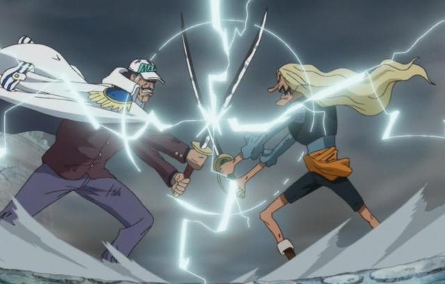 黃猿波魯薩利諾的情況與庫贊類似,不同的是黃猿是用閃光果實凝聚的光之劍,就視覺效果來說更加炫目!