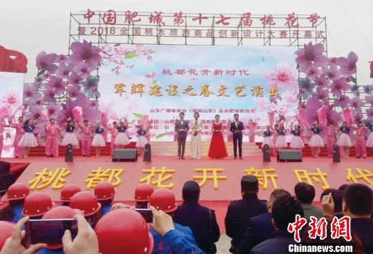 第17屆肥城桃花節4日在肥城劉台桃花源風景區舉行開幕式文藝演出。宋傑 攝