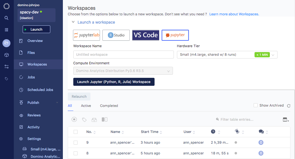 說明頁面https://support.dominodatalab.com/hc/en-us/articles/115000392643-Environment-management